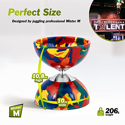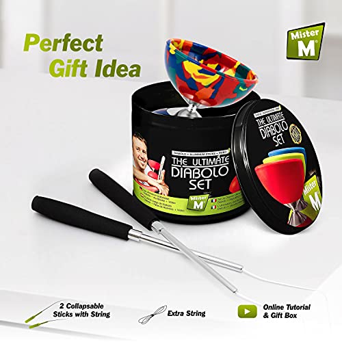 Specification: ✓ “De Ultieme Diabolo Set” van “Mister M” ✓ Diabolo ✓ Aluminiumstaven ✓ Gratis Online Video ✓ een geschenkverpakking (Camouflage)