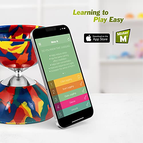 Deze diabolo kan niet breken, ook al valt hij naar beneden omdat hij gemaakt is van extra sterke Het geproduceerde rubber is…………………. ontworpen, getest en geproduceerd door “Mister M”. .. Met zijn GRATIS online video laat de internationale bekroonde jongleur zien… entertainer en auteur, hoe je kunt leren jongleren met de diabolo en er plezier in kunt hebben hebben…