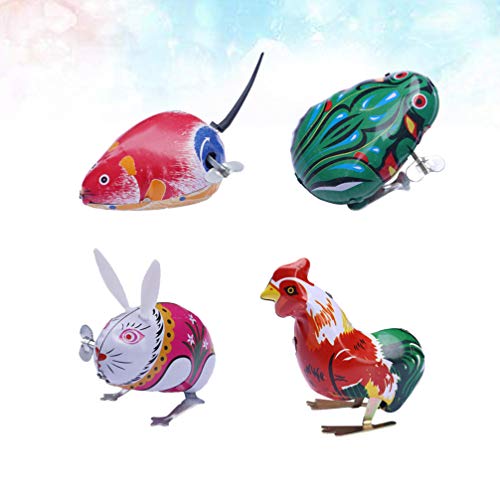 Specification: Amosfun Speelgoed, uurwerk, dieren, speelgoed, ijzer, kikker, kraan, haas, muis, springend speelgoed, 4 stuks, vintage…