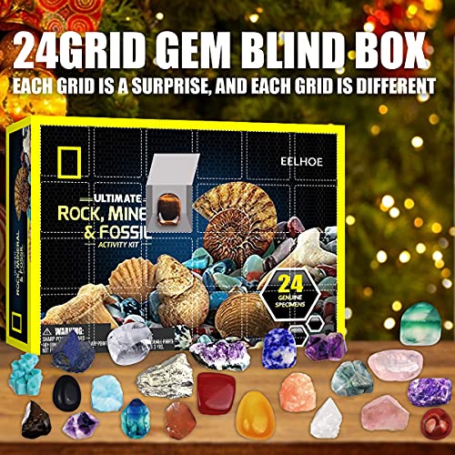 Specification: Beenle-Icey Adventskalender 2021, 24 dagen kerst countdown, Geographic Rock Mineral Fossil Dig Collection kit…