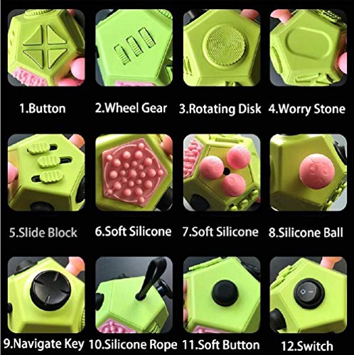 ˜ Fidget dodecagon 12 kanten fidget Cube om geest en vingers bezig te houden, stress en angst te verminderen, waardoor de geest niet afzwerft, waardoor men zich beter kan concentreren.˜ De 12-zijdige fidget Cube heeft 12 zijden om je hand bezig te houden. Het is gemaakt van hoogwaardig ABS-kunststof met een glad oppervlak, geeft u een gladde klikrol, ideaal voor clickers, rollen en spinners.˜ 12 zijden inclusief tandwielen, knoppen, joystick, schakelaar, kalmeert en stressballen, schijf, siliconen ballen, joystick verbinding. Laat je lichaam en stemming los en help je je concentreren op je werk of studie.˜ Zakformaat, duurzaam, lichtgewicht, discreet en draagbaar. De 12 zijdige fidget Cube is geschikt voor zowel kinderen als volwassenen, geweldig speelgoed voor fidgets, angst, focuseren, toevoegen & adhd, ocd, Autisme, stoppen met slechte gewoonten, wakker blijven.˜ Geschenkpakket. De vechtkubus wordt geleverd met een beschermhoes. Het extreem draagbare en zakformaat dat gemakkelijk mee te nemen is, altijd en overal te spelen. Perfect apparaat voor school, werk, vergaderingen, kerk, bibliotheken en nog belangrijker kennisgeving.