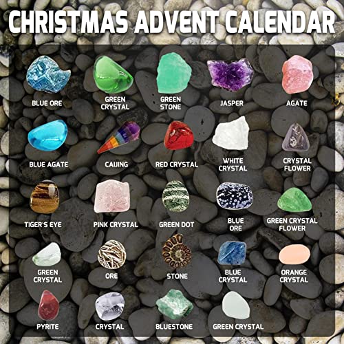 Kerst Adventskalender 2021, 24 Rasters Healing Crystal Advent Gift, Natuurlijke Kristal Erts Collectie Set, Kerst…