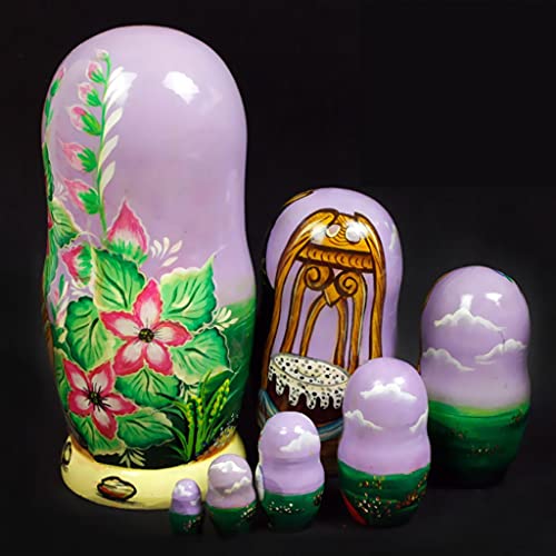 Specification: LYLY 7 Stks Russische Nesting Poppen Bloem Matroesjka Handgemaakte Houten Paars Nesting Poppen voor Kids Kerst Home Room…