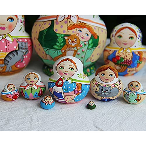 Specification: LYLY Bloem Russische Nesting Poppen Hout Matroesjka 10 Stuks Stapelen Geneste Set voor Kinderen Kerst Moederdag…