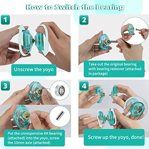 【Dual Purpose – Ook Pro Unresponsive Yoyo】Responsive yo-yo K2 is bevestigd een 8 bal niet-responsieve KK lager. Wanneer u naar het volgende niveau verplaatst, alleen om het lager te veranderen met KK lager (bevestigd), krijgt u een nieuwe Unresponsive Yoyo, geen noodzaak om een andere yo-yo te kopen, een goede waarde voor u.