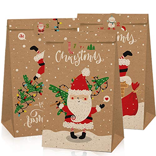 O-Kinee Adventskalender om te vullen, adventskalender, kraftpapieren zakjes, 24 adventskalenderdozen, 1-24…