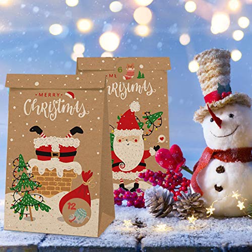 Specification: O-Kinee Adventskalender om te vullen, adventskalender, kraftpapieren zakjes, 24 adventskalenderdozen, 1-24…