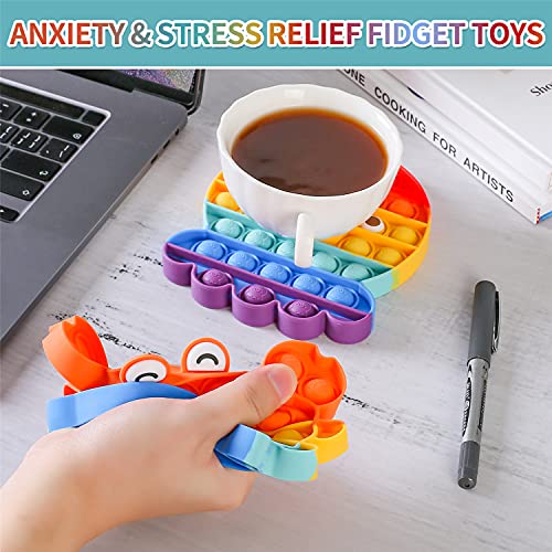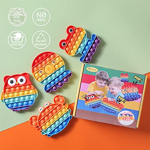 Pop it Push pop Bubble Sensory Fidget Speelgoed Autisme Speciale Behoeften Stress Reliever Extrusie Sensorisch Toys voor Kinderen en Volwassenen(4 pak regenboog uil, kikker, krab, octopus)
