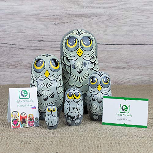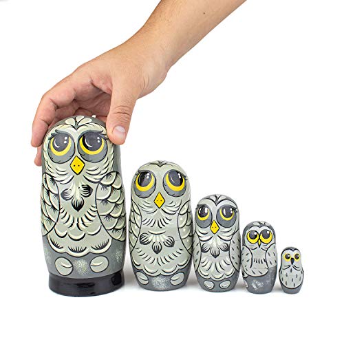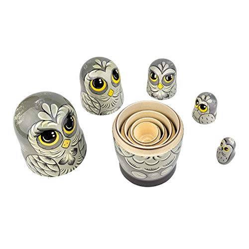 Russische Nestelpoppen, 5 Dieren Matroesjka Uil Stijl | Baboesjka Houten Poppen Geschenk Speelgoed, Grijze Uil Ontwerp…
