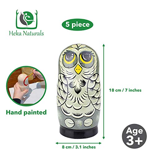 Specification: Russische Nestelpoppen, 5 Dieren Matroesjka Uil Stijl | Baboesjka Houten Poppen Geschenk Speelgoed, Grijze Uil Ontwerp…