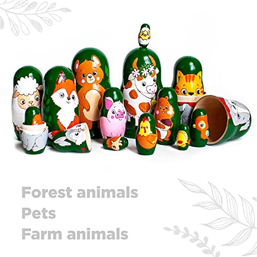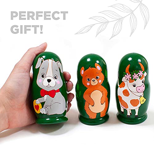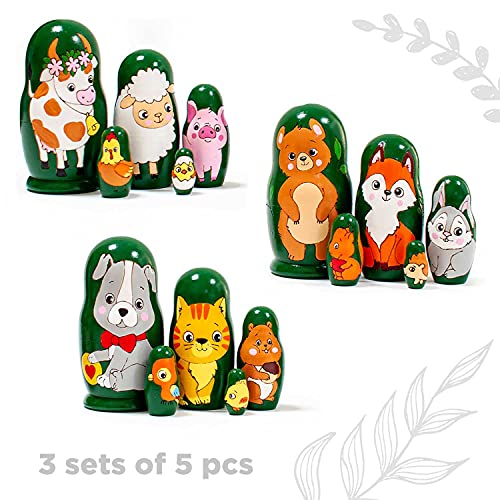 Ulanik Lot 3 Sets van 5 stuks 10,5 cm Dieren Matroesjka Leeftijd 3 + nesten Pop Hand Geschilderd Slavische Pop…