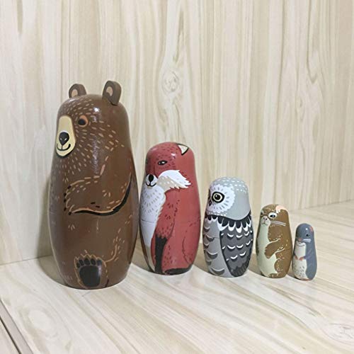 Vokmon 5 Stks/set Leuke Dier Nesten Stapelen Houten Poppen Matroesjka Cartoon Dier Russische Etnische Kunst Hout Poppen