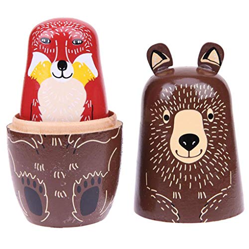 Specification: Vokmon 5 Stks/set Leuke Dier Nesten Stapelen Houten Poppen Matroesjka Cartoon Dier Russische Etnische Kunst Hout Poppen