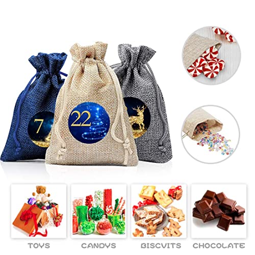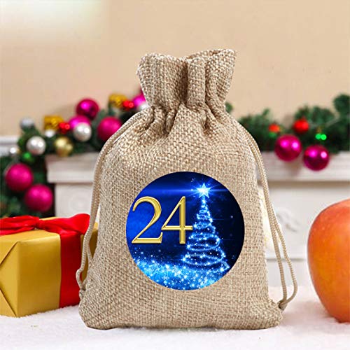 Wishstar Adventskalender 2021, om te vullen, 24 jute geschenkzakjes, 24 adventsgetallenstickers, om zelf te knutselen…